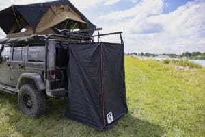 Une des spécificités de la marque de tentes de toit allemande, ce sont les nombreux accessoires proposés par Vickywood avec des auvents, des tentes de douche, des stores latéraux ou encore des extensions de stores.