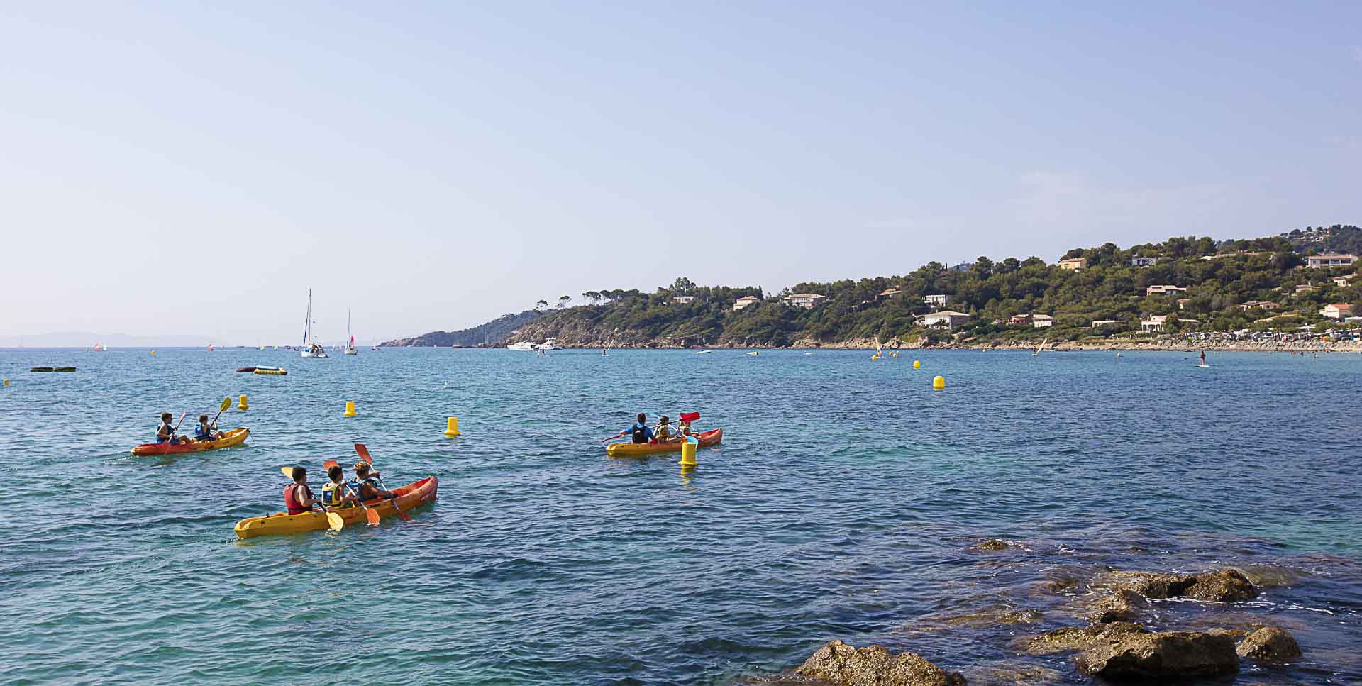 Bien sûr, Bormes-les-Mimosas dispose de nombreux atouts qui lui ont valu de figurer sur la liste des plus beaux villages de France. Ce sont toutefois ses plages qui constituent la principale raison des vacanciers qui choisissent la destination pour un séjour en camping sur la Côte d’Azur. Il faut dire que le village bénéficie d’un cadre exceptionnel. IL niche en effet au fond d’une baie qui figure dans le cercle très fermé des plus belles baies au monde. C’est dans cet environnement préservé que vous trouverez plusieurs plages pour goûter aux joies du farniente sur les rives de la Méditerranée. Parmi ces plages, les plages de Cabasson et de Brégançon ont pour décor le fort présidentiel, la plage de l’Estagnol est réputée pour son sable fin et son eau cristalline, la plage du Gouron est ombragée et bordée de rochers et la plage du Pellegrin entourée de pinède se cache au sein d’un domaine viticole. Chacune de ces plages offre une ambiance différente. A vous de choisir celle que vous préférez lors de vos vacances en camping sur la Côte-d’Azur à Bormes-les-Mimosas. Pour les activités nautiques, la plage de la Favière tient à votre disposition kayak de mer, paddles, etc. Vous pourrez également y prendre des leçons de voile, vous essayer au ski nautique ou vous initier aux joies de la plongée sous-marine.